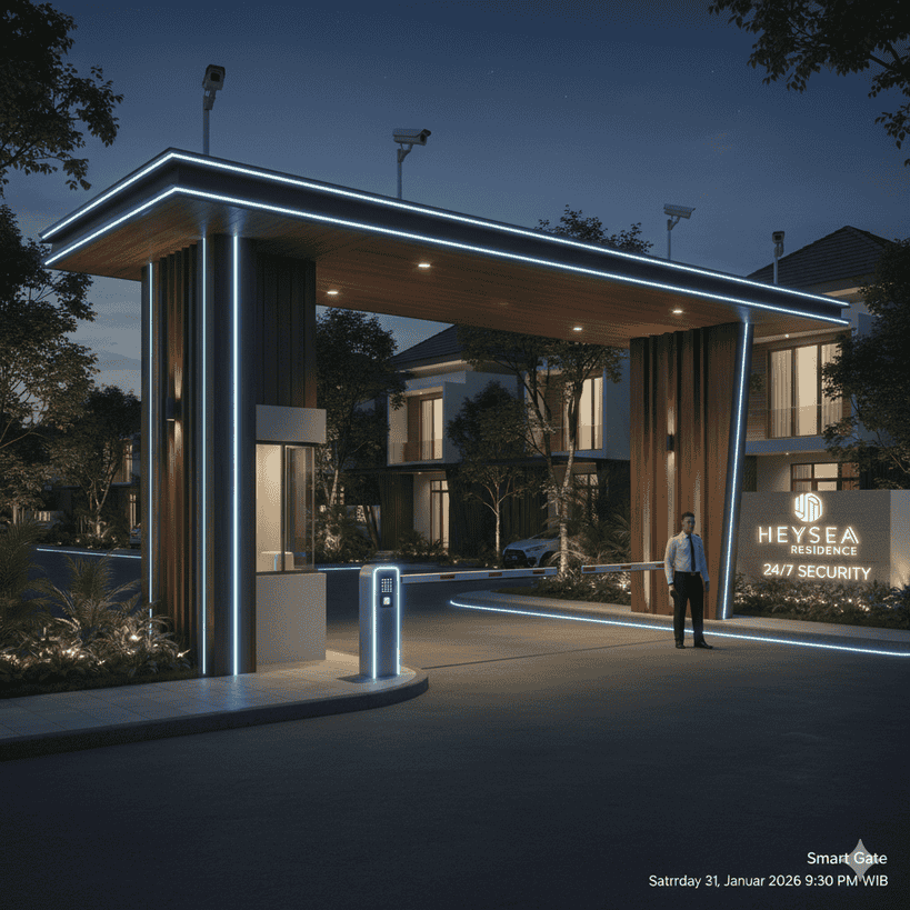 Sistem keamanan terpadu dengan akses gerbang pintar dan pengawasan penuh.